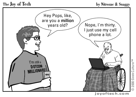 Welcome to the Joy of Tech... our new daily comic, illustrated by Nitrozac and written by Nitrozac and Snaggy. It's a little bit simpler in style than After Y2K, and will be more topical, and we hope you'll enjoy it!
