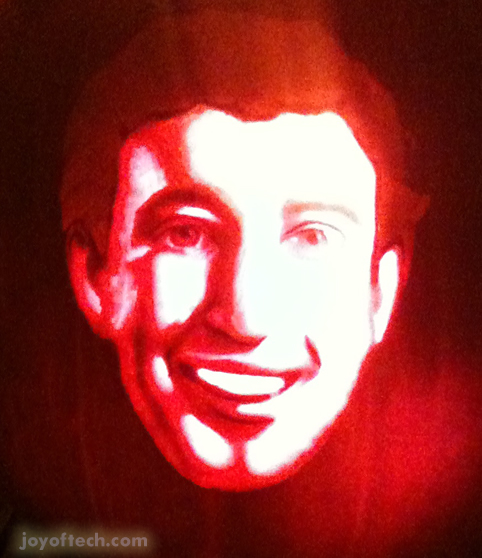 What could be more scary than a 26-year old billionaire who controls the private information of 500 million people, and thinks privacy is dead? Nothing, in our humble opinion! Here are links to the pattern you can use to make your own Zuck o' Lantern. Just click on the image below, download the linked file, print it out on your printer and away you go. We've also included a bonus "Privacy is Dead" tombstone pattern! You can follow the simple directions on our comic, or head on over to a more detailed tutorial here. It features our classic Ellen Feiss pumpkin, but the same principles will apply to the Zuck o' Lantern. Note: The Zuck o' Lantern is for serious, dedicated pumpkin carvers, it is a real challenge! We also have a Steve Jobs Pattern that is a little easier, if you so desire.