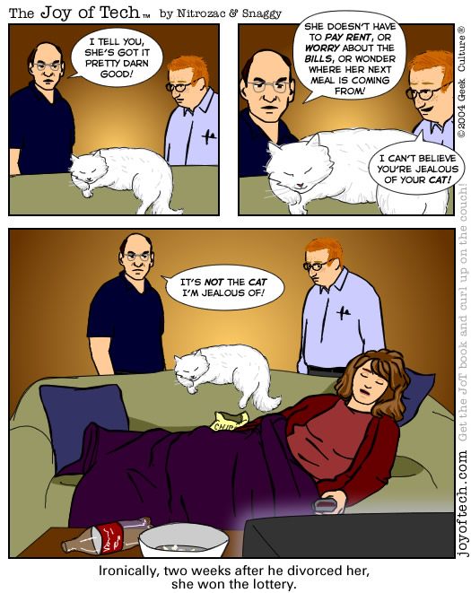 • This comic is species-ist, the humans should be on the couch and the cat should have to work!